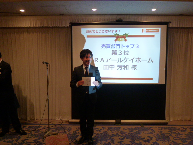 今回は東京地区秋のセールスコンテストも開催され、賃貸部門からは川井課長、村嶋が、売買部門からは西尾課長、田中がおかげさまで表彰されました。